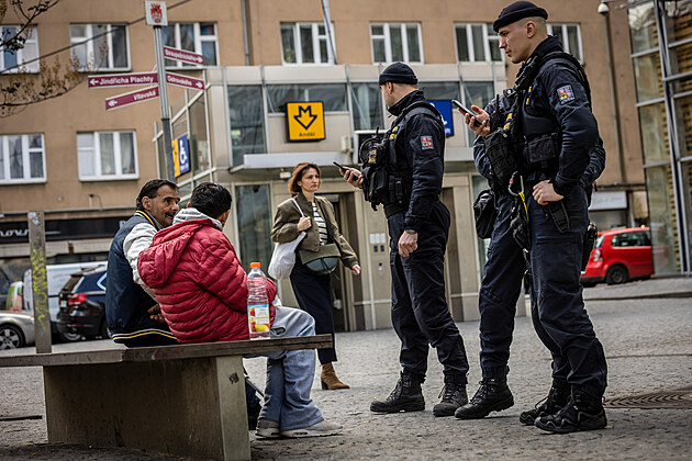 Policie i strážníci posílili hlídky v lokalitě v okolí stanice metra Anděl v Praze 5. (27. dubna 2023)