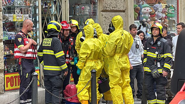 Zásah hasičské speciální jednotky v Praze na Andělu kvůli neznámé látce. (20. května 2025)