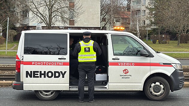 Řidič Tesly v Praze Hostivaři najel do kolejiště tramvaje. Vyprostili ho až autojeřábem. (16. prosince 2024)