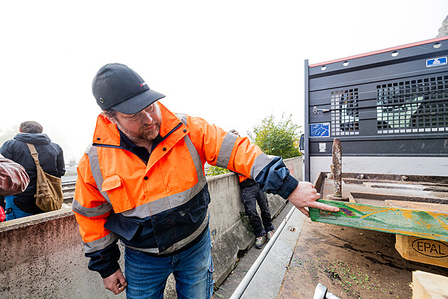 Horolezci pomocí jeřábu sundali z Barrandovských skal ikonický nápis BARRANDE z roku 1884. Projde rekonstrukcí. (25. října 2024)