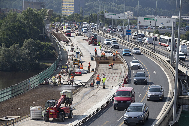 Pokračující rekonstrukce Barrandovského mostu, kontrolní den stavby (10. července 2024)