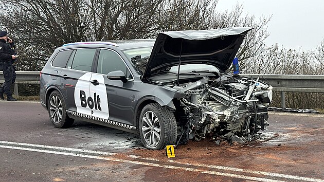 Řidič taxislužby čelně střetl jiné osobní vozidlo na Pražském okruhu. Jeho auto začalo hořet. (1. prosince 2024)