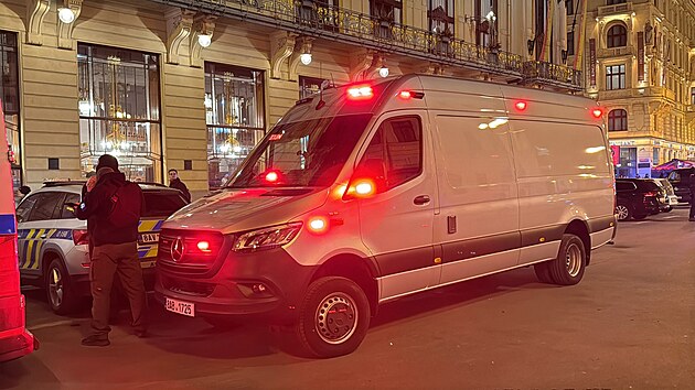 Zásah v kavárně u Obecního domu kvůli anonymem nahlášené bombě. (19. února 2025)