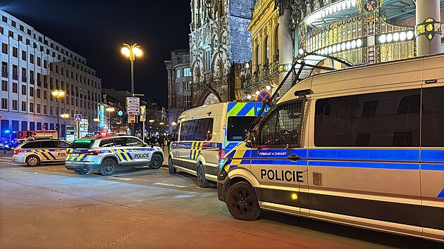 Zásah v kavárně u Obecního domu kvůli anonymem nahlášené bombě. (19. února 2025)
