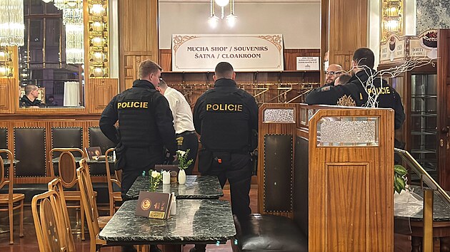 Zásah v kavárně u Obecního domu kvůli anonymem nahlášené bombě. (19. února 2025)