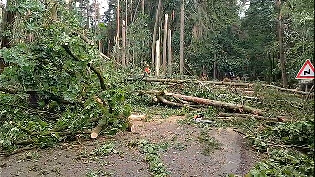 Silnici u Křečovic po bouřce zasypaly stromy