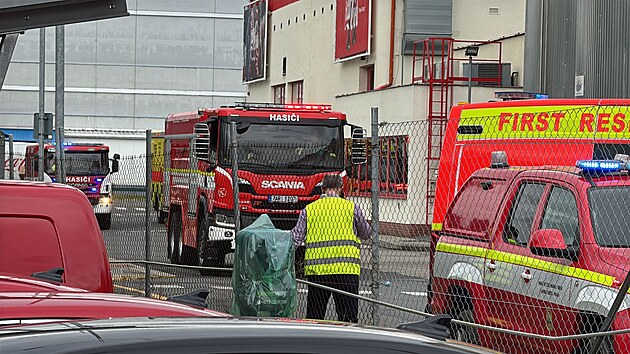 K požáru střídače elektrické energie v Českobrodské ulici vyjížděli hasiči. (30. července 2025)