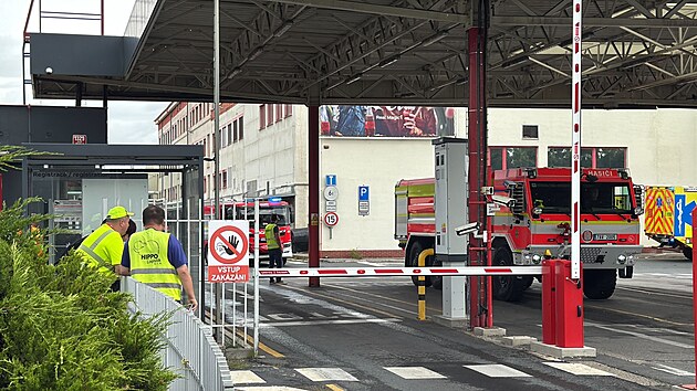 K požáru střídače elektrické energie v Českobrodské ulici vyjížděli hasiči. (30. července 2025)