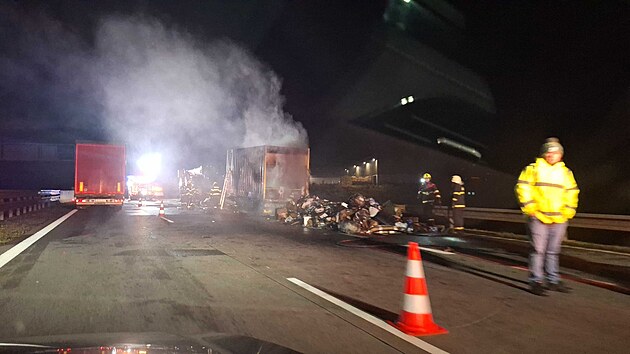 V úterý zasahovali hasiči Středočeského kraje u požáru kamionu na 33. km ve směru na Brno. Na tři hodiny kompletně uzavřel provoz. (4. listopadu 2025)