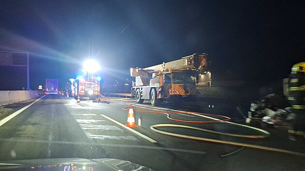 V úterý zasahovali hasiči Středočeského kraje u požáru kamionu na 33. km ve směru na Brno. Na tři hodiny kompletně uzavřel provoz. (4. listopadu 2025)