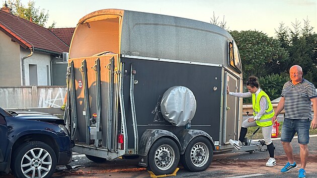 Dálnici D4 zablokovala směrem na Prahu hromadná kolize několika vozidel včetně motocyklu a vozu s přívěsem, v němž byl kůň. (21. září 2025)