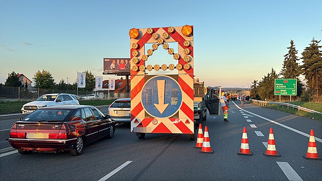 Dálnici D4 zablokovala směrem na Prahu hromadná kolize několika vozidel včetně motocyklu a vozu s přívěsem, v němž byl kůň. (21. září 2025)