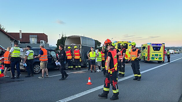 Dálnici D4 zablokovala směrem na Prahu hromadná kolize několika vozidel včetně motocyklu a vozu s přívěsem, v němž byl kůň. (21. září 2025)