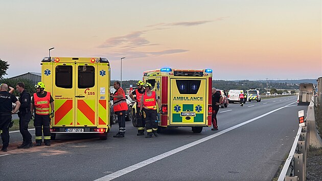 Dálnici D4 zablokovala směrem na Prahu hromadná kolize několika vozidel včetně motocyklu a vozu s přívěsem, v němž byl kůň. (21. září 2025)
