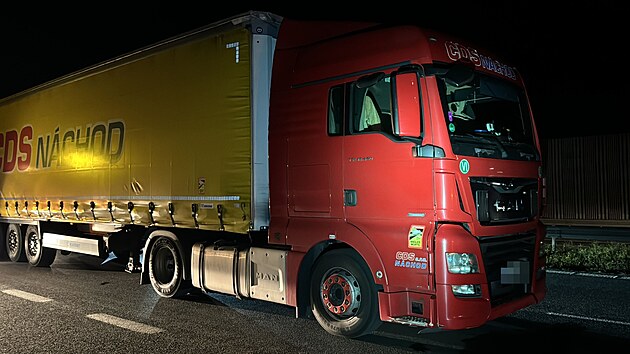 Opuštěný kamion, jehož řidič utekl před policisty do vlaku (20. listopadu 2024)