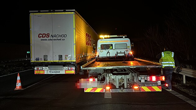 Opuštěný kamion, jehož řidič utekl před policisty do vlaku (20. listopadu 2024)