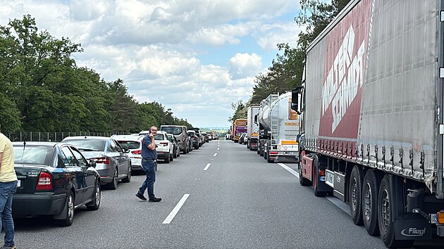 Dálnici D10 ve směru na Turnov uzavřela v pátek dopoledne hromadná nehoda, bourala tři nákladní auta a šest osobních vozů. (23. května 2025)