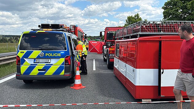 Dálnici D10 ve směru na Turnov uzavřela v pátek dopoledne hromadná nehoda, bourala tři nákladní auta a šest osobních vozů. (23. května 2025)