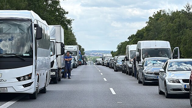 Dálnici D10 ve směru na Turnov uzavřela v pátek dopoledne hromadná nehoda, bourala tři nákladní auta a šest osobních vozů. (23. května 2025)