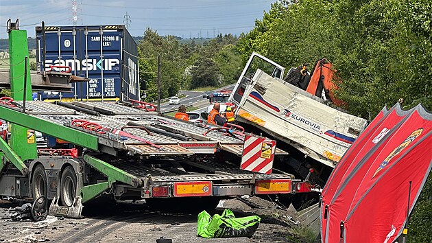 Dálnici D10 ve směru na Turnov uzavřela v pátek dopoledne hromadná nehoda, bourala tři nákladní auta a šest osobních vozů. (23. května 2025)