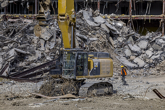 Bourání budovy CETIN, někdy nazývané pražský Mordor (2. dubna 2024)