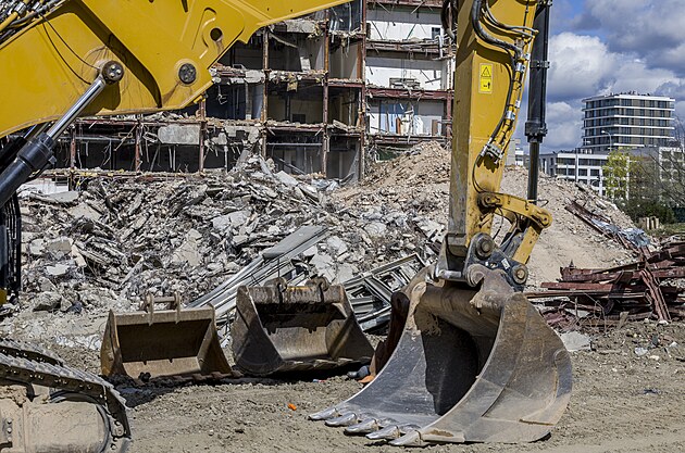 Bourání budovy CETIN, někdy nazývané pražský Mordor (2. dubna 2024)