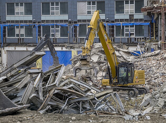 Bourání budovy CETIN, někdy nazývané pražský Mordor (2. dubna 2024)