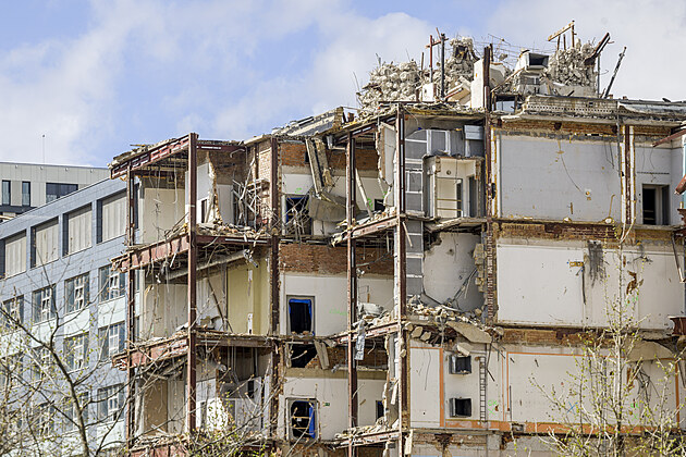 Bourání budovy CETIN, někdy nazývané pražský Mordor (2. dubna 2024)