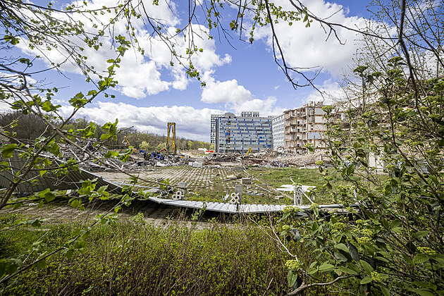 Bourání budovy CETIN, někdy nazývané pražský Mordor (2. dubna 2024)