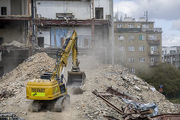 Bourání budovy CETIN, někdy nazývané pražský Mordor (2. dubna 2024)