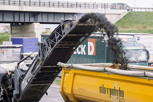 Na Pražském okruhu v úseku od ústí Lochkovského tunelu ke sjezdu na Slivenec začala v pondělí po zimní přestávce druhé polovina výměny povrchu vozovky. (31. března 2025)
