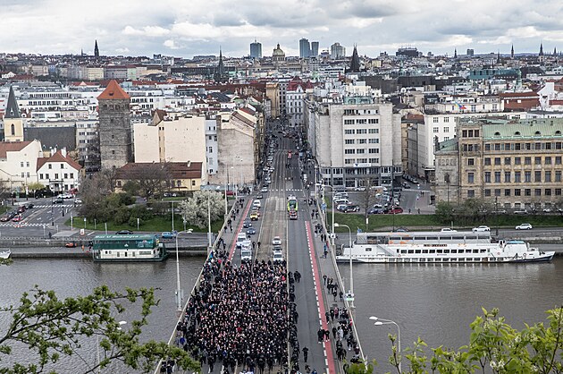 Fanoušci Slavie při pochodu Prahou před utkáním se Spartou