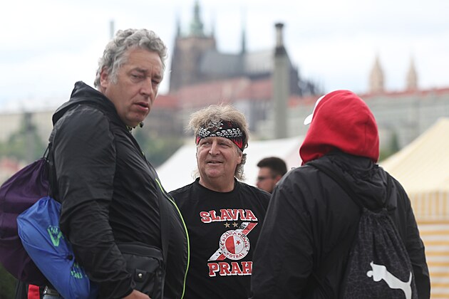 POCHOD. Fanoušci fotbalové Slavie během cesty od Rudolfina na Letnou.