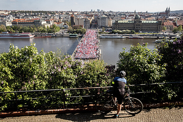 Momentka z pochodu fanoušků Slavie na sparťanský stadion na Letné.