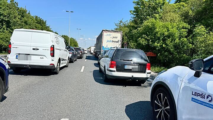 Nastartované vozidlo bez řidiče komplikovalo v pondělí dopoledne dopravu směrem na pražské Letiště Václava Havla. (12. května 2025)
