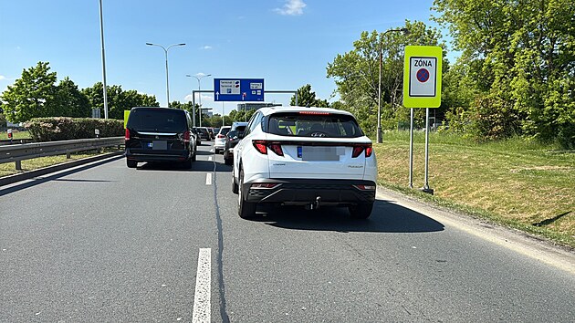 Nastartované vozidlo bez řidiče komplikovalo v pondělí dopoledne dopravu směrem na pražské Letiště Václava Havla. (12. května 2025)