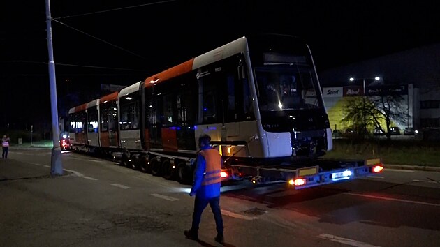 Zbrusu nová tramvaj ŠKODA 52T dorazila během noci do Prahy.
