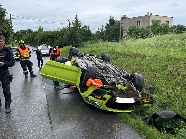 Hasiči zasahovali u nehody osobního auta v obci Liteň na Berounsku. (7. června 2025)