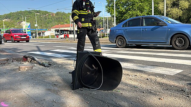 Policisté měli při výjezdu k události dopravní nehodu v ulici Plzeňská. (1. května 2025)