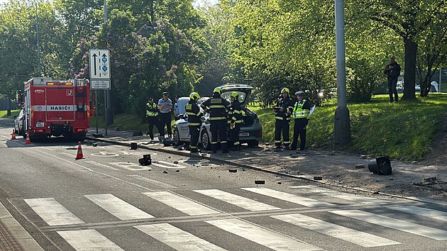 Policisté měli při výjezdu k události dopravní nehodu v ulici Plzeňská. (1. května 2025)
