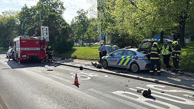 Policisté měli při výjezdu k události dopravní nehodu v ulici Plzeňská. (1. května 2025)