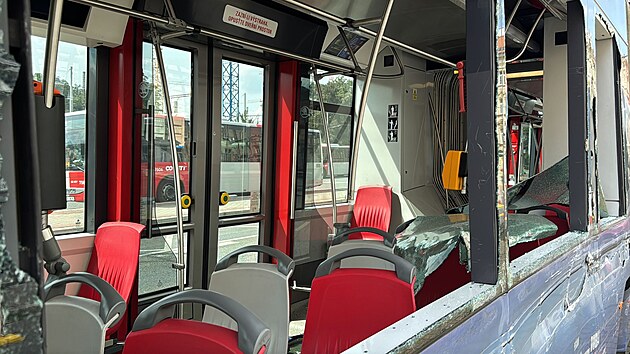 Na zastávce městské hromadné dopravy Smíchovské nádraží narazil v nedělili odpoledne autobus do tramvaje. (20. července 2025)