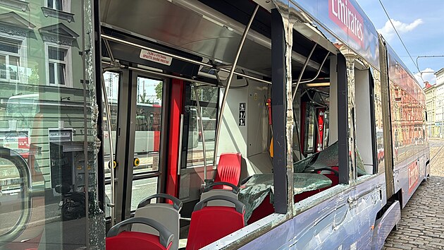 Na zastávce městské hromadné dopravy Smíchovské nádraží narazil v nedělili odpoledne autobus do tramvaje. (20. července 2025)