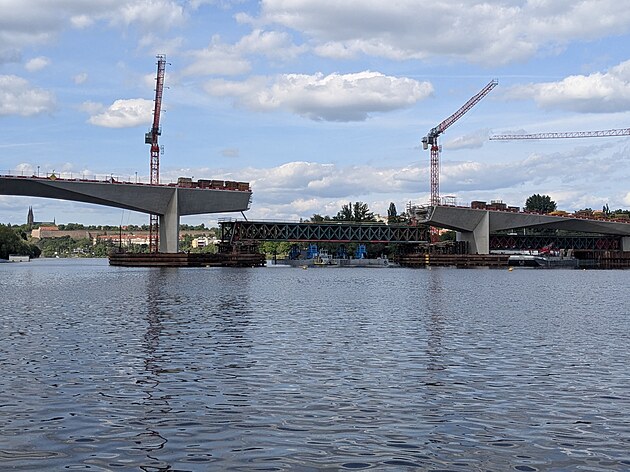 Fotografie datovaná k letošnímu 11. květnu. Konstrukce, která „odpočívala“ u Modřanského jezu, je již na místě.