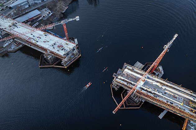 Rozestavěný Dvorecký most. (21. března 2025)