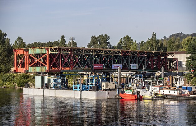 Přeprava nadměrné konstrukce ke Dvoreckému mostu po Vltavě ( 18.07.2024)