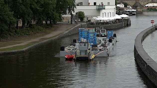 Prahou vezli nadměrný náklad k rozestavěnému Dvoreckému mostu