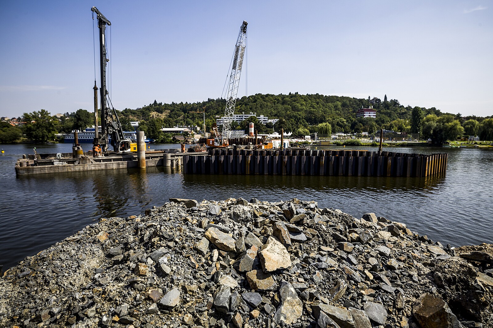 Stavba Dvoreckého mostu (16. srpna 2023)