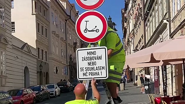 V Nerudově ulici na Praze 1 značkou zakázali vjezd pro elektrokoloběžky