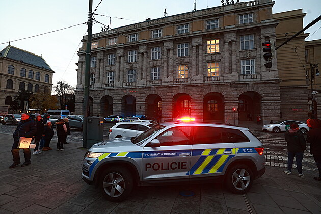 Policisté v pátek odpoledne pátrali v centru Prahy po muži, který přišel do budovy Filosofické fakulty Univerzity Karlovy na náměstí Jana Palacha, choval se nestandardně a mluvil o střelbě. (29. listopadu 2024)